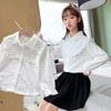 Denna förtjusande långärmade skjorta är tillverkad av mjuk polyester och erbjuder en bekväm och andningsbar användning.. Dess söta design i koreansk stil har intrikata vita spetsdetaljer tillsammans med en charmig rosett, vilket tillför en elegant touch.. Tillräckligt mångsidig för både vår och höst, ger denna skjorta en stilfull och lekfull look, perfekt för en mängd olika tillfällen.