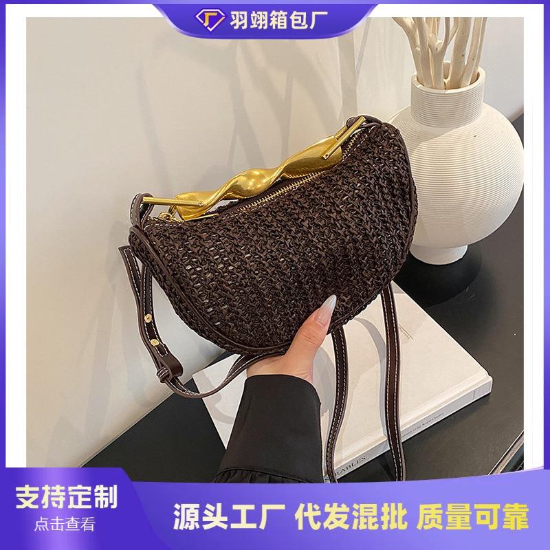 Nisch handvävd stråväska dam sommar ny axelväska strandsemester strand dumplingväska