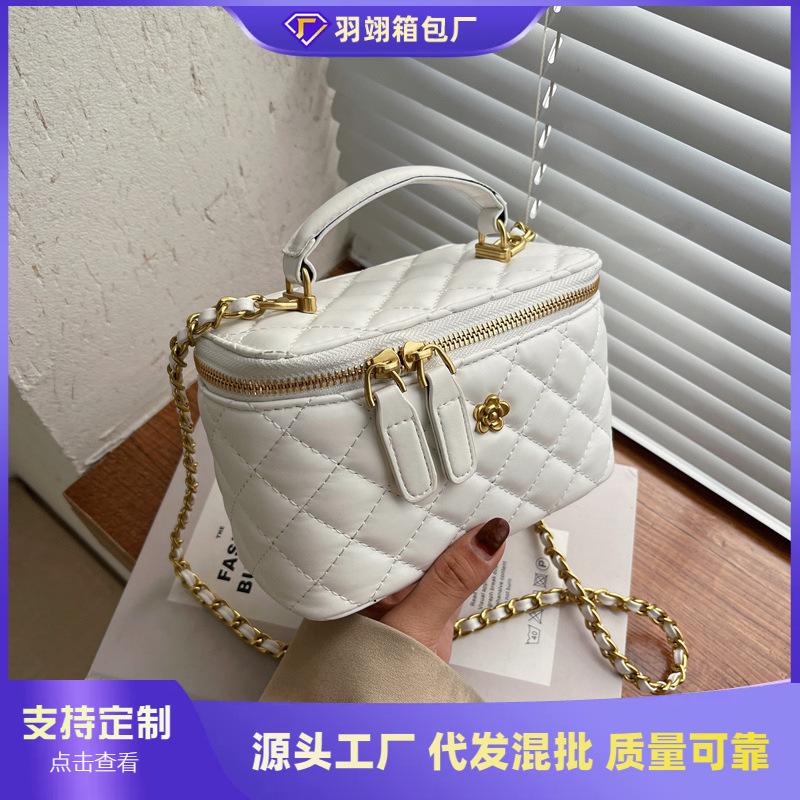 Premium textur liten väska dam ny nischdesign diamantkedja axelremsväska bärbar bucketväska