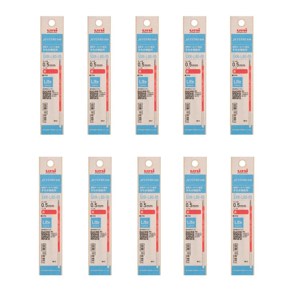 Mitsubishi Pencil Jetstream Light Touch Ink Ballpoint Pen Multicolor 10 Refills, Multifunction, 0.5mm, Red, Refills, SXRL8005.15, 10-Pack