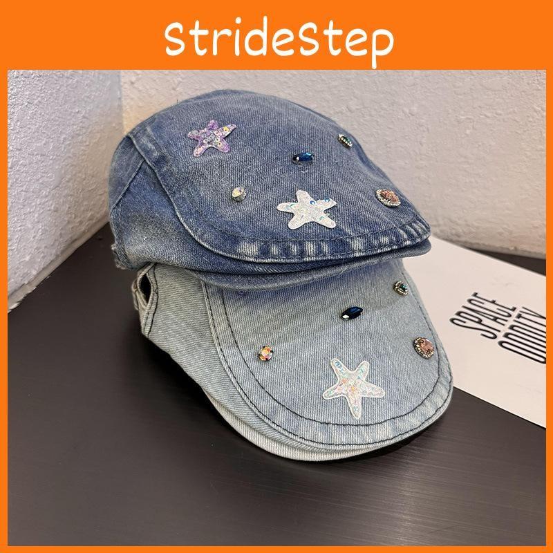 This Japanese retro star cowhide cabbie hat features a short brim and is crafted from breathable denim fabric with 61-70% cotton content. Measuring 55-59cm in circumference, it provides comfortable sun protection for all seasons. Ideal for casual outings, it supports stylish, functional wear. Wipe clean with a damp cloth for maintenance.