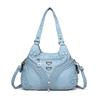Tvättad Läder Damväska, Toteväska, Mjukt Läder Enkel Axelväska, Crossbodyväska, Retro Medelålders Mammas Väska