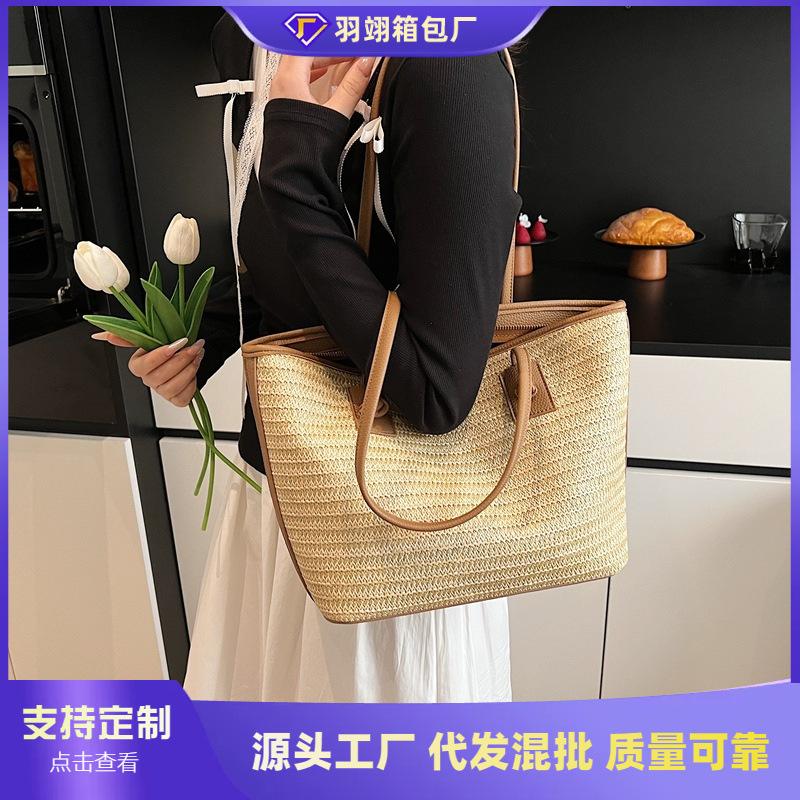 Large capacity straw woven bag women's new fashion versatile shoulder bag beach portable woven tote bag