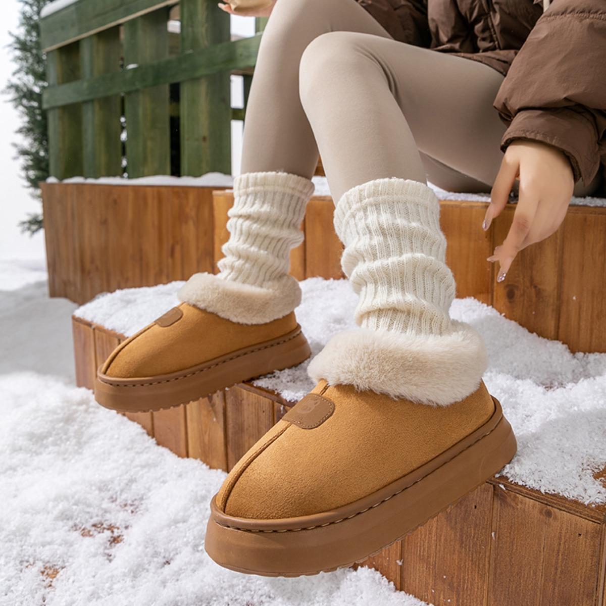 Vintersnöskor med plyschiga tjocka sulor för hemvärme och luktförebyggande, bärs utomhus med plyschiga halkfria vattentäta bomullsskor