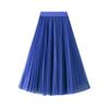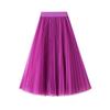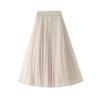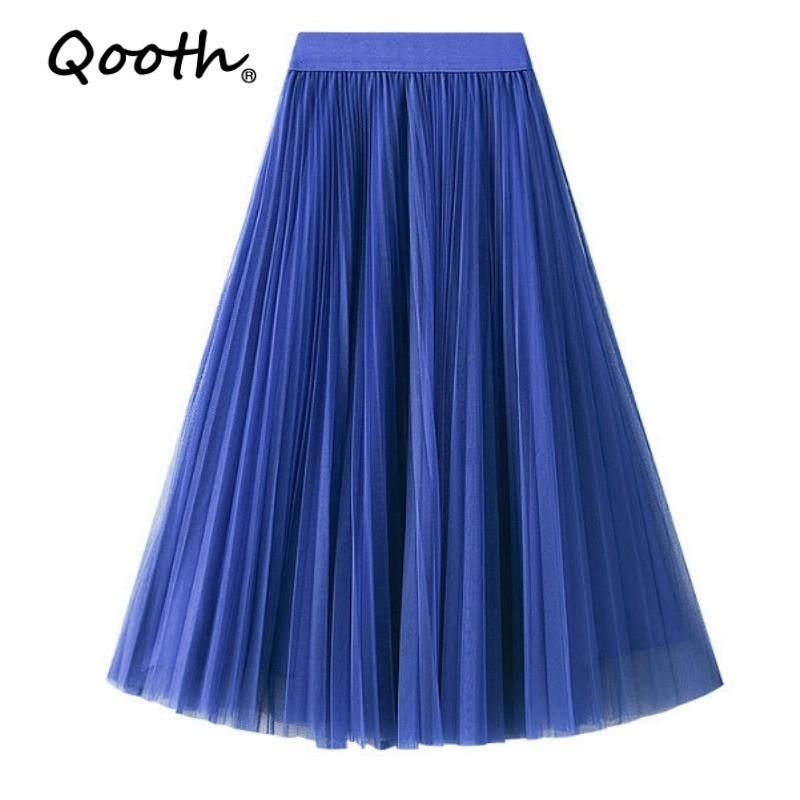 Qooth Elegant Women A Line Tulle Pleated Skirt Wide Hem Mid Length Elastic Waist Casual Skirt QT2691