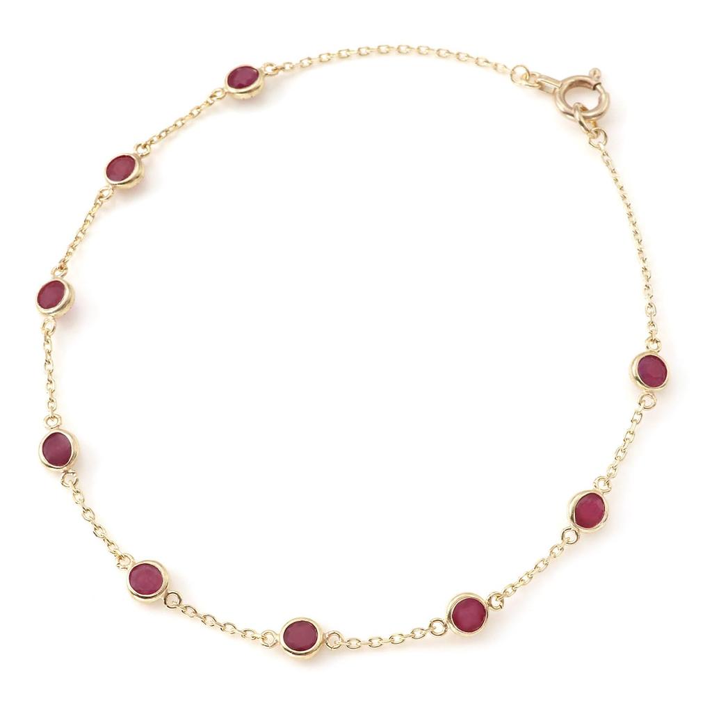 Barzaz Ruby Bracelet with Natural 10K Yellow 9 Stones Stones, Women's, Gold, 10K, 16cm,