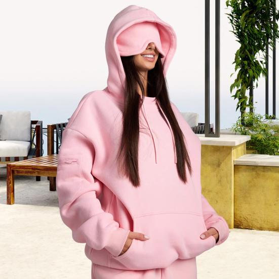 Dess lätta och justerbara ögonmaskdesign säkerställer en säker passform, vilket gör den bekväm för både sidosovare och sömnlösa resenärer.. Oavsett om du reser, campar under stjärnorna eller bara varvar ner hemma, ger denna mångsidiga hoodie omedelbar komfort och lugn i alla miljöer.. Omfamna den ultimata lösningen för avkoppling och stil med denna allt-i-ett-hoodie där mysigt möter praktiskt på det mest innovativa sättet!