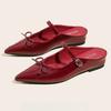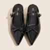 Fashion Fashion Pointed Toe Bow Flat Sandals Women High Quality Patent Leather Low Heel Slippers Summer Elegant Dress Zapatos De Mujer
