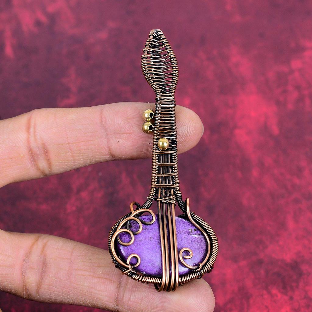 Purpurite pendant copper wire wrapped pendant handmade dainty jewelry guitar pendant copper jewelry engagement gift natural gemstone pendant