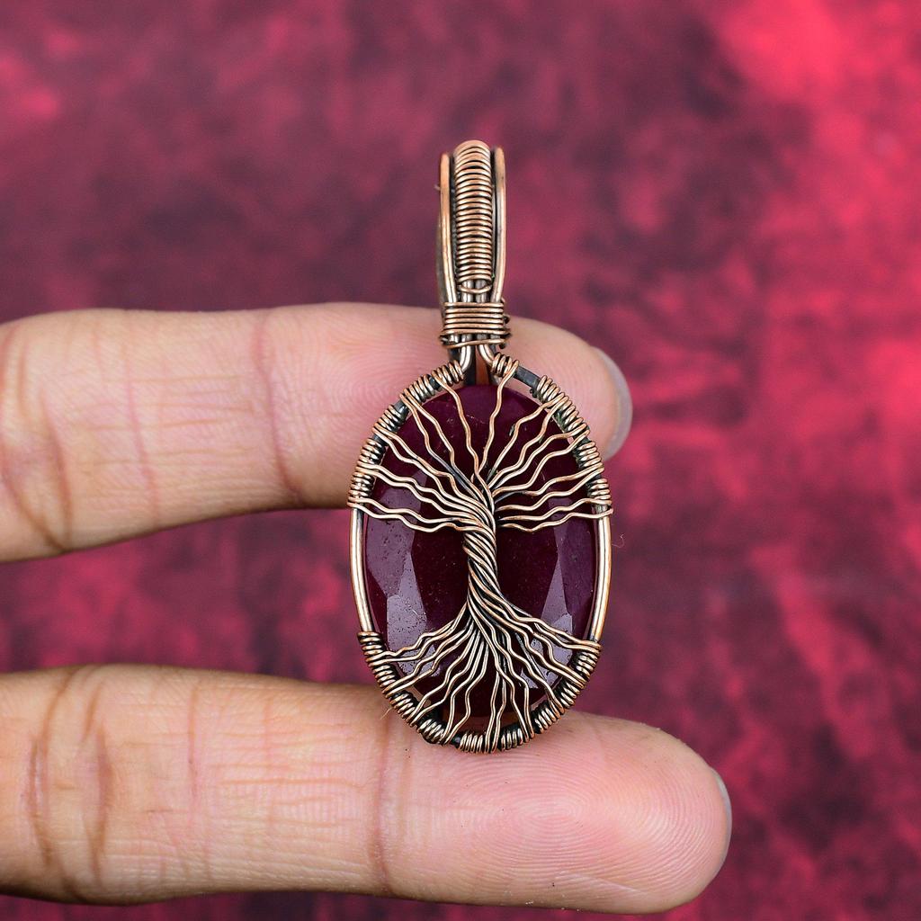 Tree of life faceted kashmir ruby pendant copper wire wrapped jewelry handmade real gemstone pendant copper wire wrap pendant gifts for wife