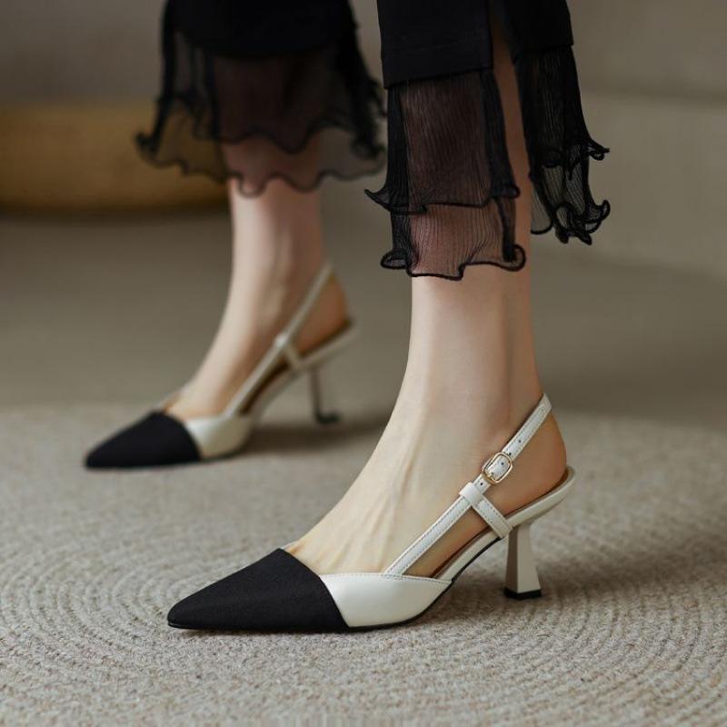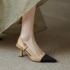 2025 design sense careful machine French small fragrant style color matching stiletto high heels pointed tip absolute child empty single shoes sandals
