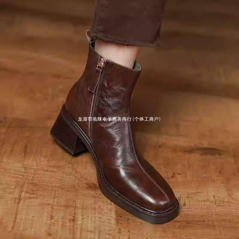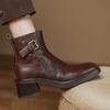 2025 autumn and winter new retro medium heel thick heel new Chinese belt buckle short boots femininity British Martin boots