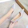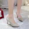 Enkla skor dam nya 3 cm tunn klack champagne spetsiga damskor silver paljett bröllopsskor koreansk version mångsidiga arbetsskor
