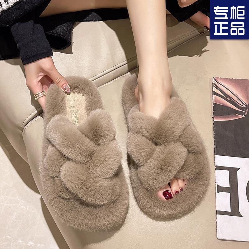 Thick-bottomed fluffy slippers women's winter wear 2025 new Internet celebrity super fire fairy fashion cross one-word warm slippers