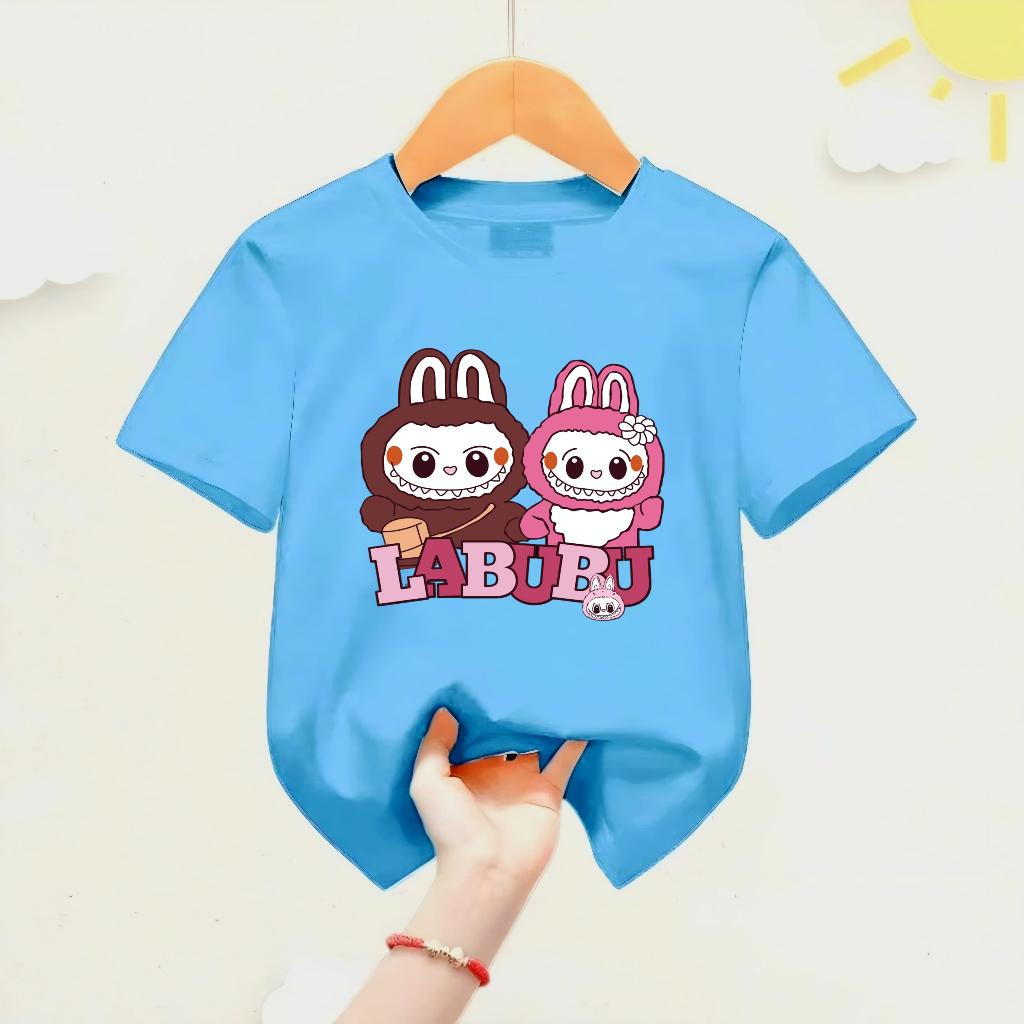 Contemporary Children's T-shirt Top, Printed with Popular LABUBU Pattern for Children's Clothing Short Sleeved Casual