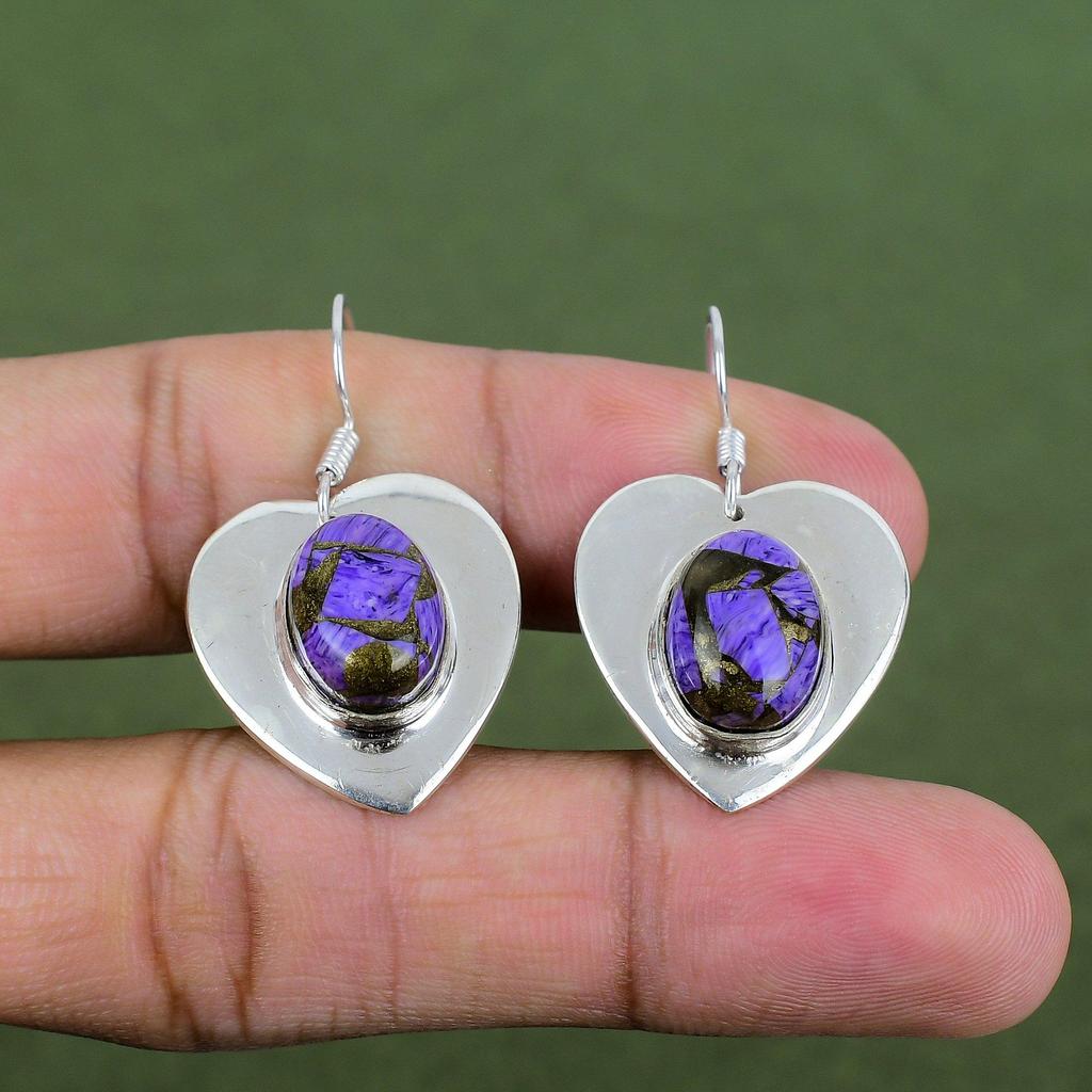 Copper Charoite Earring 925 Sterling Silver Earring Handmade Earring Natural Gemstone Earrings Charoite Jewelry Drop Earring Engagement Gift