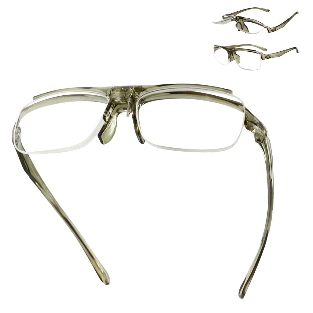 Flip-up magnifying glasses - One-handed operation: raise the lens for far-distance viewing and lower the lens for close-up viewing. These progressive glasses are convenient and don't require frequent removal. Perfect for fishing, repairs, and reading, these glasses are perfect for detailed work without worrying about the hassle.
