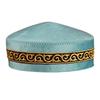 Premium Dutch velour material and intricate embroidery define this handmade Muslim cap, blending traditional Kazakh craftsmanship with modern elegance in vibrant blue, green, or khaki hues.