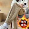 Höst Vinter Elastisk Midja Enfärgad Lös Ledig Haremsbyxa Dam Enkel Allmatch Sammet Varma Byxor