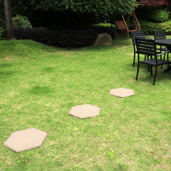 Mångsidig utomhusanvändning: Från trädgårdsstigar till gräsytor, leriga fläckar till sandig terräng, dessa trappstenar är mångsidiga tillägg till alla utomhusmiljöer. Förvandla ditt utrymme utan ansträngning genom att införliva dessa hållbara och eleganta element i din landskapsdesign.