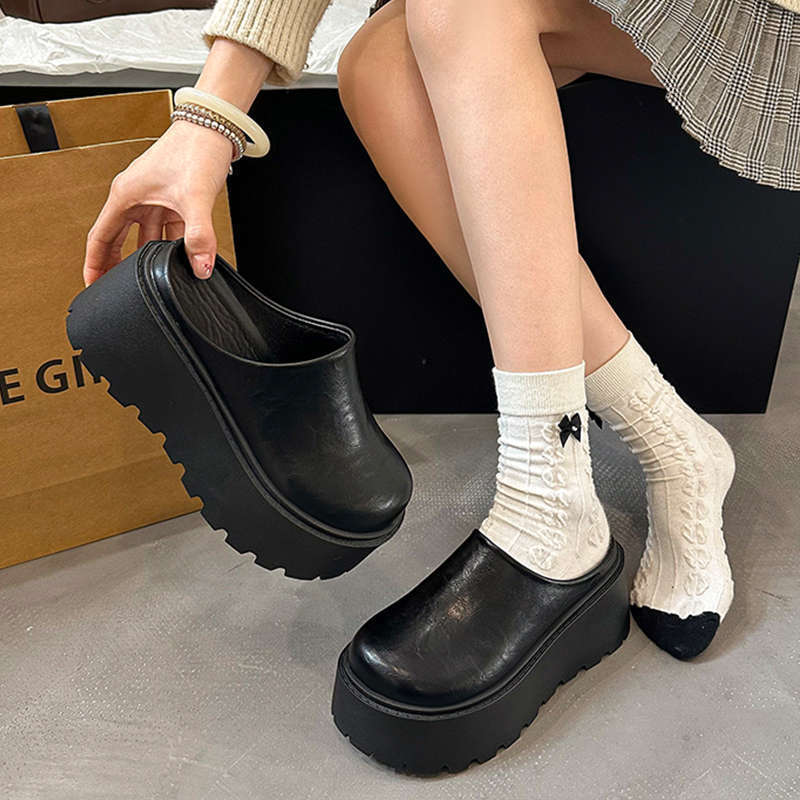 Höjdökande tofflor med tjock sula dam ytterkläder 2025 sommar ny superhet internetkändis svart högklackad halvstöd väska huvud toffel