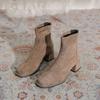 French suede thick heel short boots women's 2025 new rear zipper square head thin boots daily wear high heel women's boots
