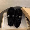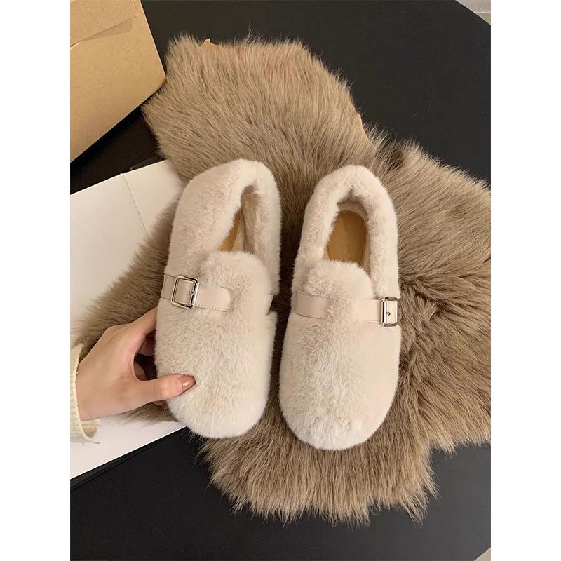 French evening wind belt buckle Mao Mao shoes women's 2025 new versatile and comfortable one-pedal flat-soled Doudou cotton shoes