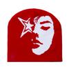 Y2K popular star woman singer pattern jacquard knitted hat hip hop personality warm winter hat woman