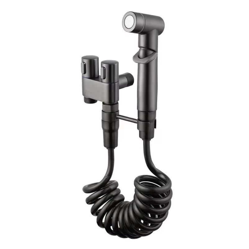 Bidé toalett duschset spray vatten badrum handhållen bidédusch toalett dusch dubbelt utlopp vinkelventil toalettillbehör