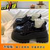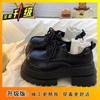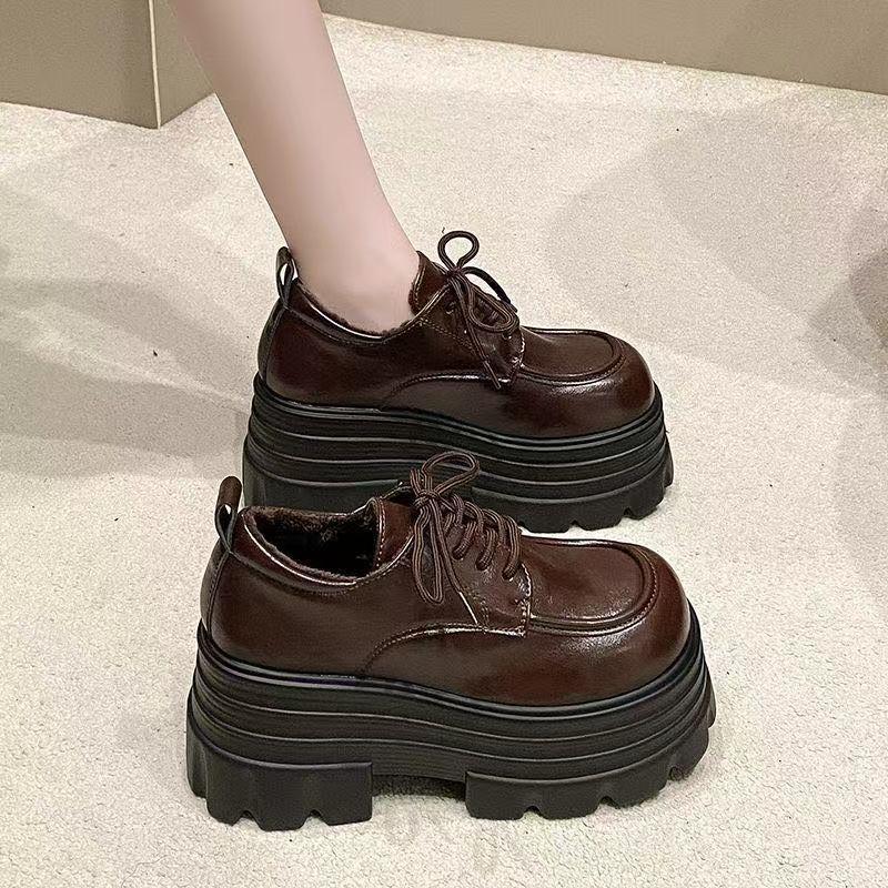 Små läderskor dam 2025 vinter nya små retro svarta platå franska djup urringning snörning höjande loafers