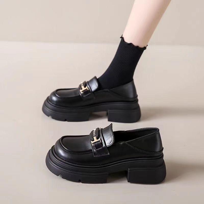Loafers dam 2025 nya höstplattform retro enpedal små läderskor brittisk stil svarta damer ins