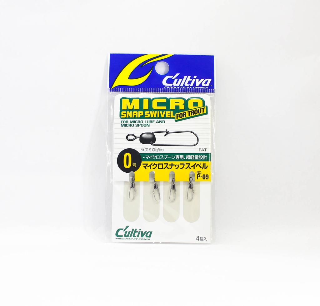 Owner P-09 Micro Snap Swivel Lure Snap Size 0 (1643) Brand: Owner Model: P-09 Part Type: Swivel Size: 0 Weight: N/A Strength: 9 kg Color: Silver Diameter: N/A Quantity in Packet: 4 Country/Region of Manufacture: N/A
