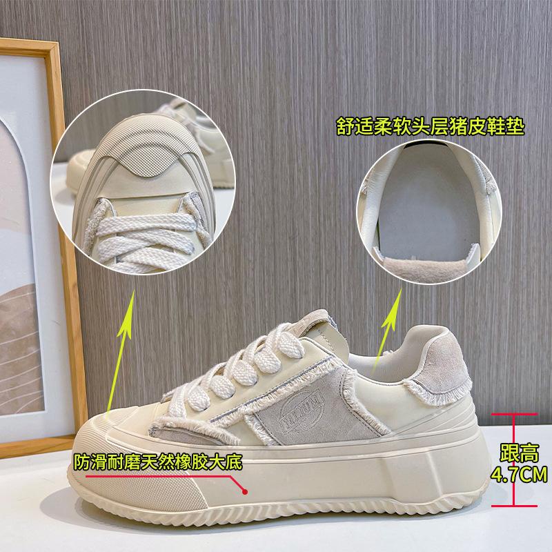 Leather little white shoes women's spring 2025 new retro casual board shoes heightened platform shoes women's fashion contrasting women's shoes