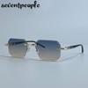 Steampunk Rektangulära Solglasögon Utan Bågar Män Lyxmärke Klassisk Punk Utomhus Solglasögon Vintage Båglösa Nyanser För Män