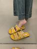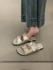 Dam 2025 nya sommar koreansk version bältesspänne strand öppen tå platt botten en-ords svala tofflor med mjuk botten