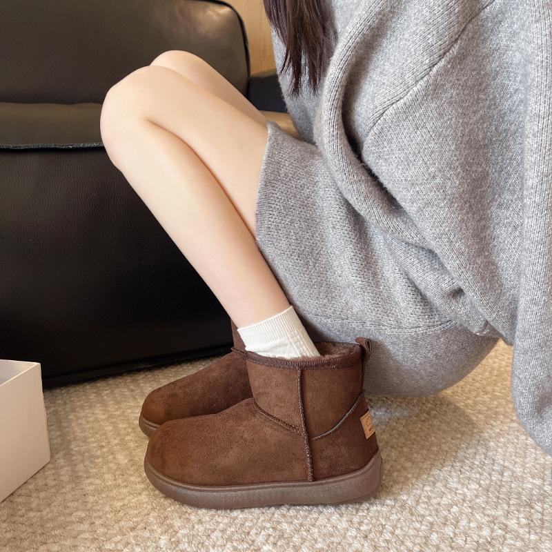 2025 autumn and winter new suede non-slip snow boots, velvet warm feet, short flat-bottomed casual women's cotton shoes