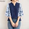 ZANZEA Women Ethnic Print Casual Round Neck 3/4 Sleeve Blouse