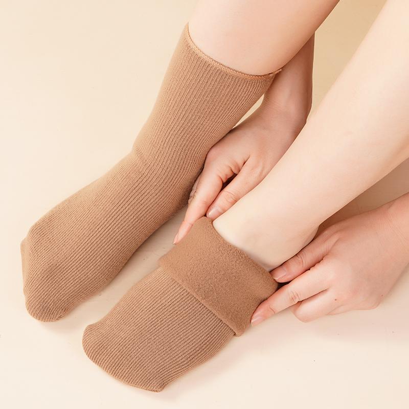 2 par damstrumpor för vintern, stickade, förtjockade, enfärgade, varma, andningsbara, mellanhöga, avslappnade golvstrumpor