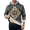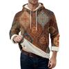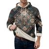 Herr långärmad fleecehuvtröja med fickor, casual