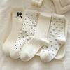 Women's Socks, Spring and Autumn Thin Cream-colored Cute Bow Polka Dot Heart-shaped Lace Mid-calf Socks