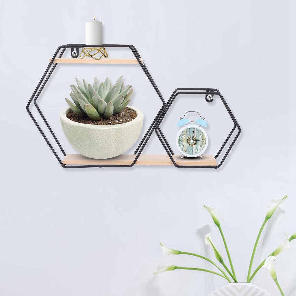 Wall Mounted No Punch Shelves Display Storage Rack Home Office Decoration(Black )