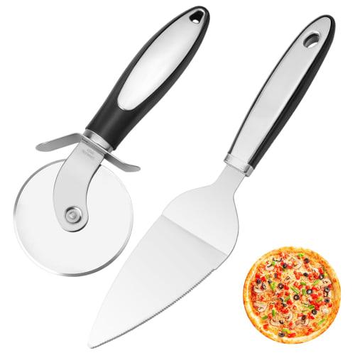 TAOTOO 2-Piece Stainless Steel Pizza Cutter Set with Rotating Pizza Knife, Non-Slip Cake Server, Finger Protection, Pie Server, Pizza Cutter, and Pizz