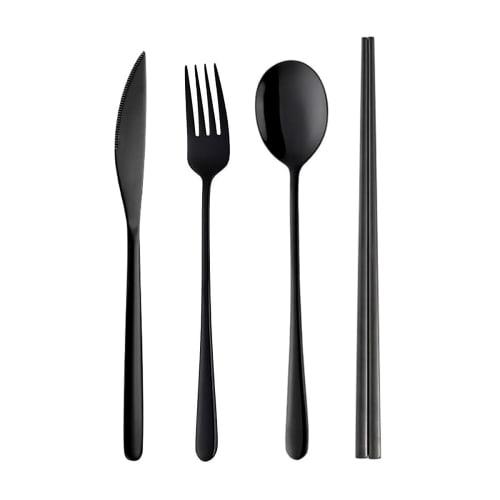 Hive Mind Nordic Style Cutlery Assortment Set (4 Pieces): Spoon, Fork, Knife, and Chopsticks