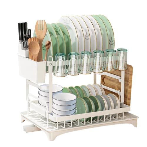 Fainyearn 2-Tier Dish Drainer, Large Capacity, Slim, Over-the-Sink Dish Drainer with Compact Cutting Board Holder, 42cm Wide x 29cm High x 29cm Deep,