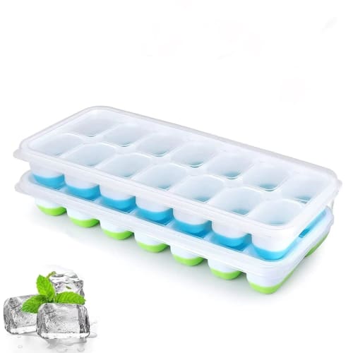 Silikonformar för isbitar med lock, mjuka, läckagesäkra, lättborttagna isbitar för te och alkohol, 2-pack (Blå + Grön)