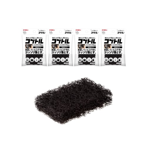 Kikuron Cookware Scrubber, Powerful Burnt-Off Remover, Black, Pack of 4 (1 Brush), Perfect for Cookware, Grills, Pots, Trivets, Iron Frying Pans, and