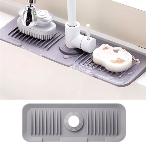 Kouizam Silicone Draining Mat for Faucet, Protects Faucet Area, Holds Soap and Sponges, Organizes Sink, Quick-Drying, Easy to Clean, Suitable for Kitc