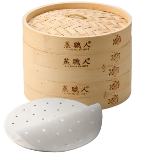 Commercial Kitchen Equipment, Heist Steamer Master Bamboo Steamer, 2-Tier (2 Steamers, 1 Lid), Commercial Steamer with 20 Steamer Sheets (Mushu Shokun