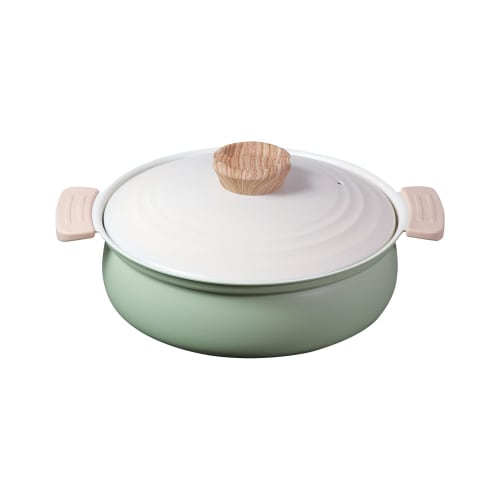PEARL METAL HB-6973 Tabletop Pot, 24cm, Induction Compatible, Baked Finish, Ceramic Coating, Serves 3-4, Green, Natural Cook Pure