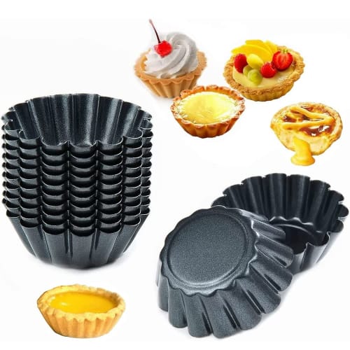 ESTVLB Mini Egg Tart Pans, Carbon Steel, Reusable, Mini Pie Pans with Liners, Round, DIY Baking Supplies, Heat and Oil Resistant, Home Baking Tools, S